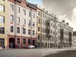 Три дома построенные в конце 19-го века приобрели вторую жизнь при помощи капитального ремонта. Отметим, что внешний вид фасада здания и часть внутренней отделки не подверглась изменениям. Массивные дубовые двери, кованные лестничные марши, плетёные оклады окон - всё это вы сможете увидеть в домах на Смольном. Из окон комплекса открывается вид на Смольный монастырь и Неву.